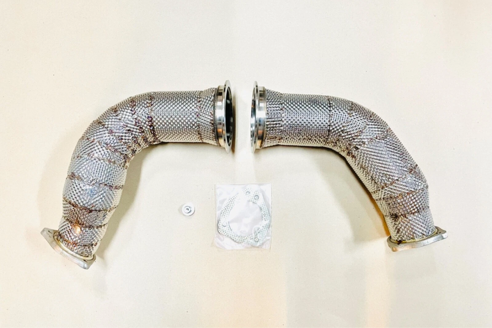 Das von uns konzipierten und bei dieser Downpipe integrierte Thermoblech schützt den umliegenden Bauraum vor Hitzeschäden.